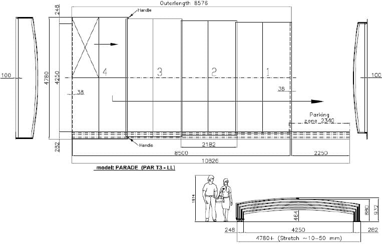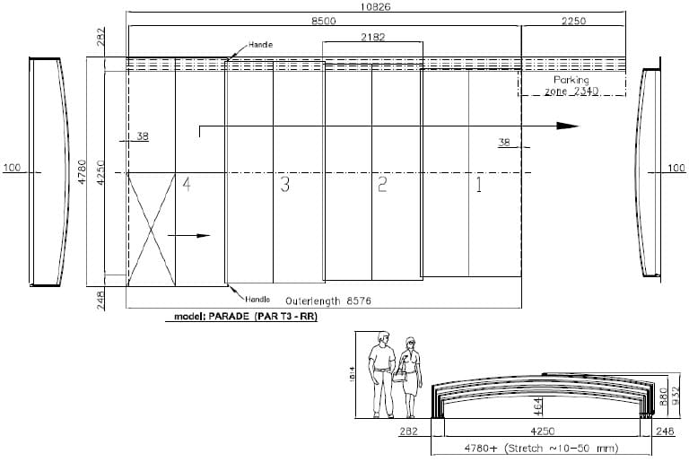 transparent kot steklo, 4 mm, kompaktni polikarbonat / antracit | PAR-T3-desna | 4.25 | 8.50 | 0.932 | 4 | EUR 8,300 | 1 bočna vrata in podaljšana vodila za 2,25m | |