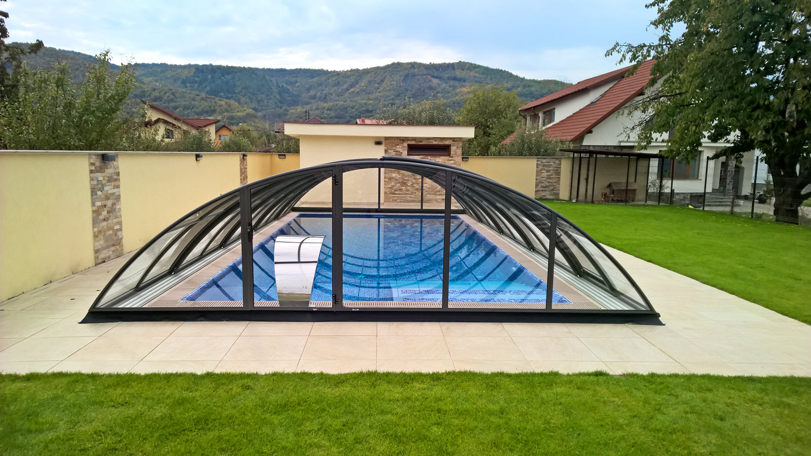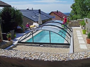 AZURE Compact – moderna srednje visoka teleskopska streha za bazen