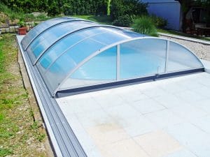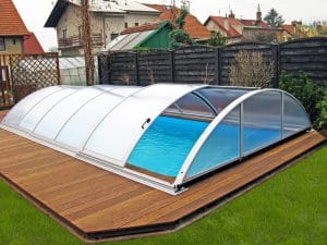 Na voljo je izbira med enokomornim ali kompaktnim polikarbonatom, ki zagotavlja odlično toplotno izolacijo, zaščito vode pred umazanijo ter podaljšuje kopalno sezono. To kakovostno pokrivalo za bazen omogoča učinkovito zadrževanje toplote in zmanjšuje stroške vzdrževanja.